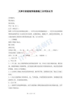 天津市家庭装饰装修施工合同协议书