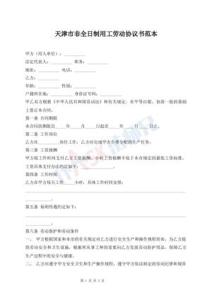 天津市非全日制用工劳动协议书范本