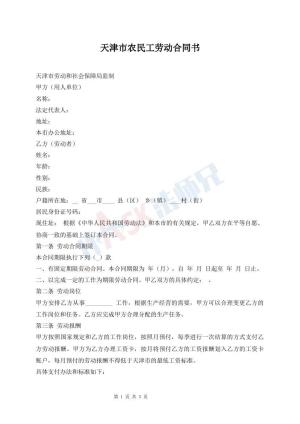 天津市农民工劳动合同书