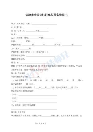 天津市企业(事业)单位劳务协议书