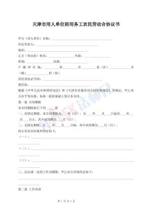 天津市用人单位招用务工农民劳动合协议书