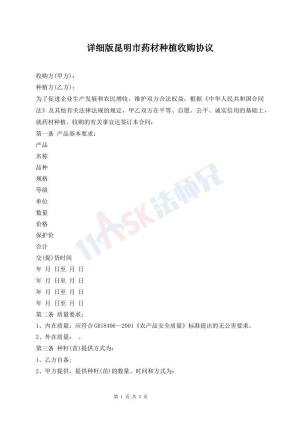 详细版昆明市药材种植收购协议