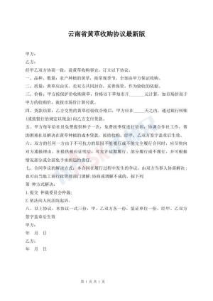 云南省黄草收购协议最新版