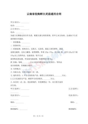 云南省收购鲜白灵菇通用合同