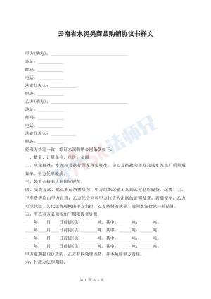 云南省水泥类商品购销协议书样文