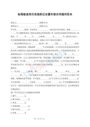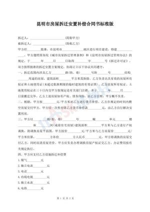 标准版昆明市房屋拆迁安置补偿合同通用范本