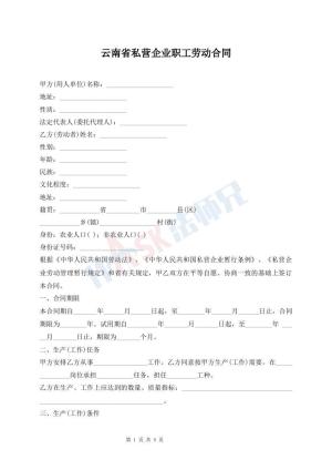 云南省私营企业职工劳动合同