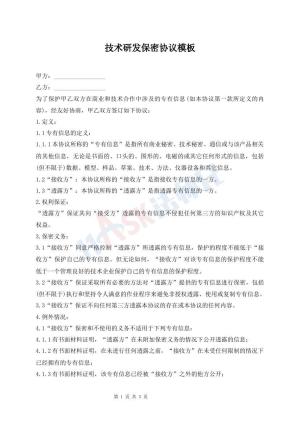 技术研发保密协议模板