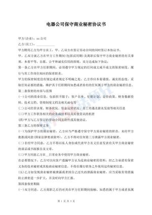 电器公司保守商业秘密协议书