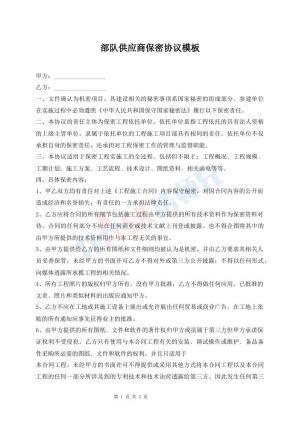 部队供应商保密协议模板