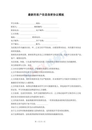 最新的客户信息保密协议模板