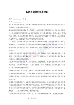 长期商业合作保密协议