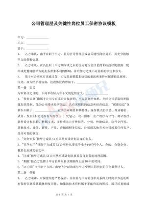 公司管理层及关键性岗位员工保密协议模板