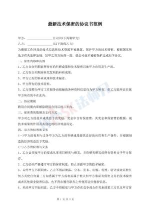 最新技术保密的协议书范例