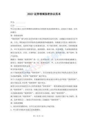 2022-证券领域保密协议范本