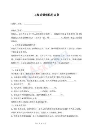 工程质量保修协议书