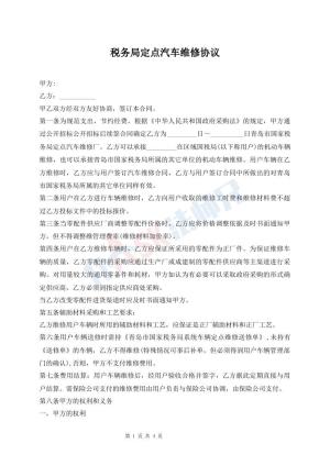 税务局定点汽车维修协议