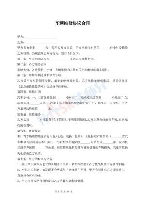 车辆维修协议合同