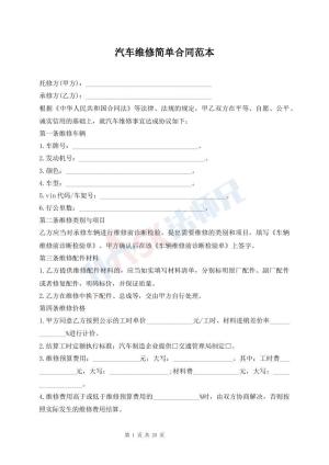 汽车维修简单合同范本