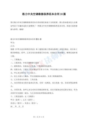 格力中央空调维修保养范本合同10篇