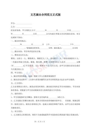 文艺演出合同范文正式版