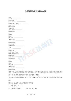 公司动画授权播映合同