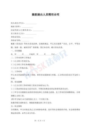 秦腔演出人员聘用合同
