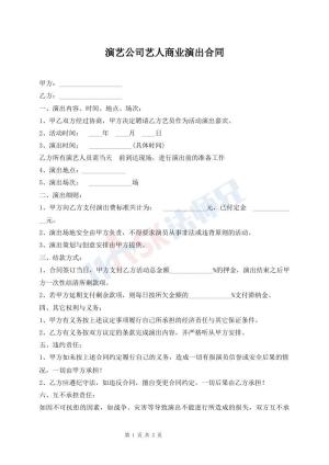 演艺公司艺人商业演出合同