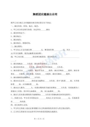 舞蹈团应邀演出合同