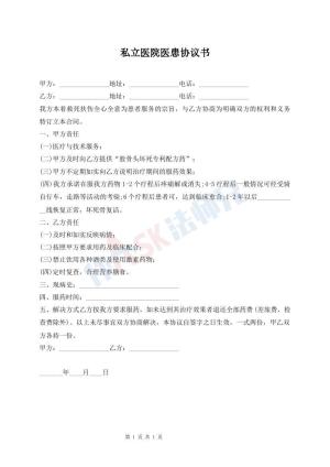 私立医院医患协议书