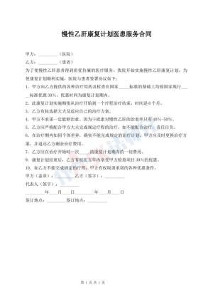 慢性乙肝康复计划医患服务合同