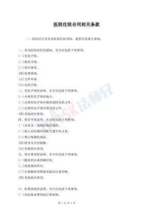医院住院合同相关条款