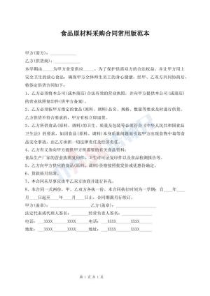 食品原材料采购合同常用版范本