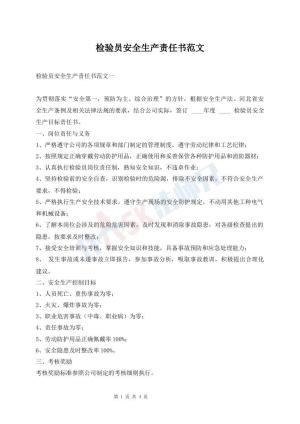 检验员安全生产责任书范文