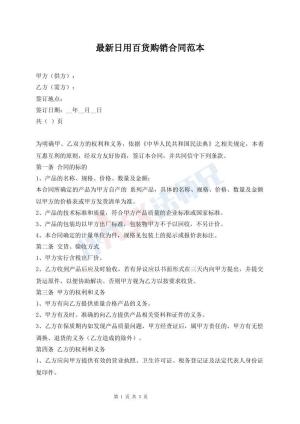 最新日用百货购销合同范本