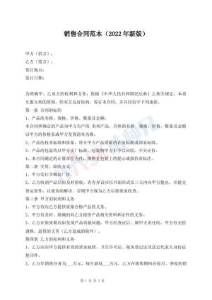 销售合同范本(2022年新版)