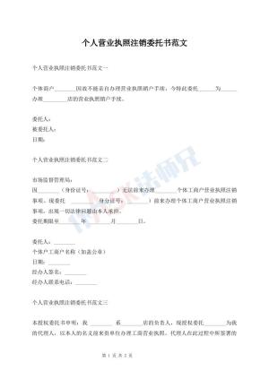 个人营业执照注销委托书范文