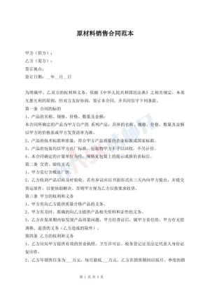 原材料销售合同范本