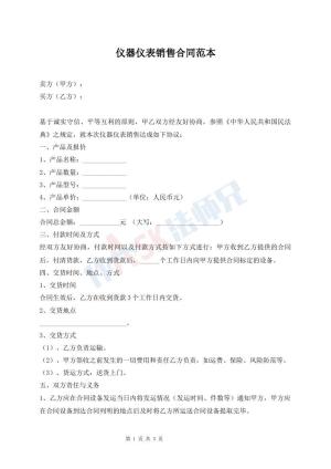 仪器仪表销售合同范本