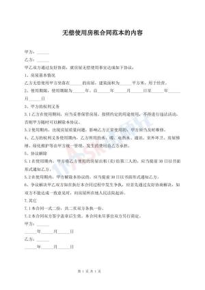 无偿使用房租合同范本的内容