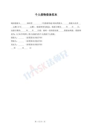 个人借物借条范本