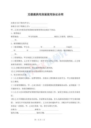无偿提供用房屋使用协议合同