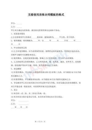 无偿使用房租合同模板的格式