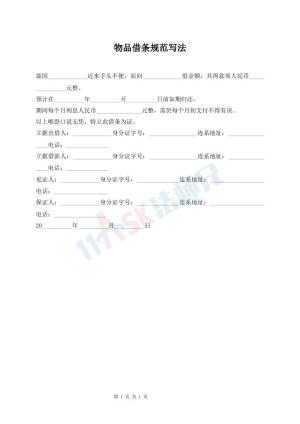 物品借条规范写法