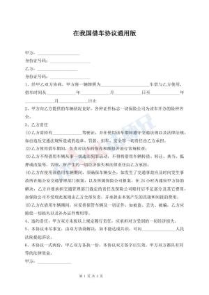 在我国借车协议通用版