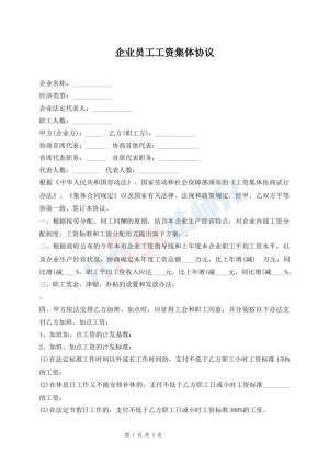 企业员工工资集体协议