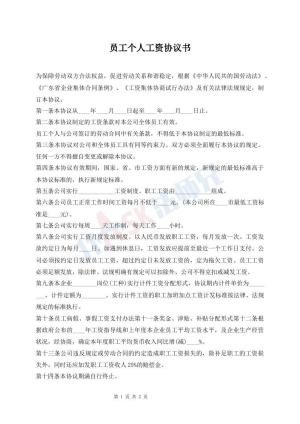 员工个人工资协议书
