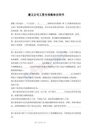 遵义公司工资专项集体合同书