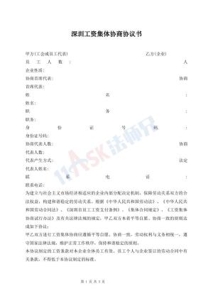 深圳工资集体协商协议书