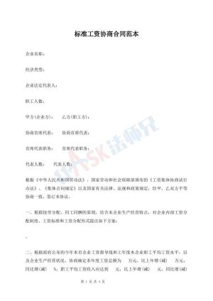 标准工资协商合同范本